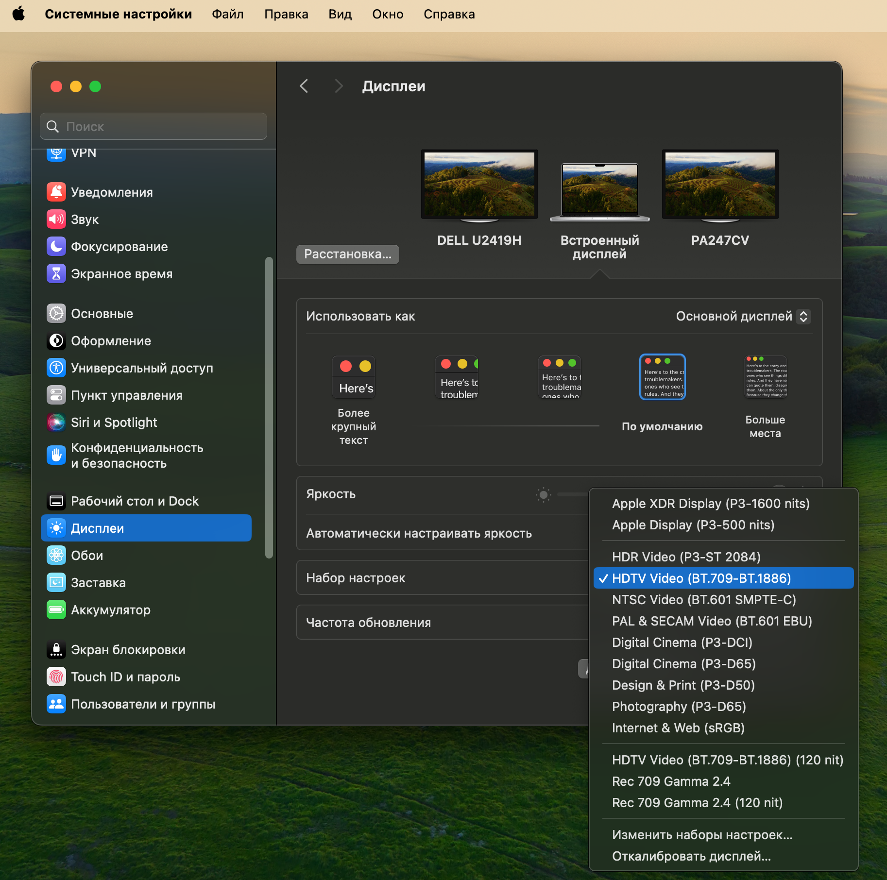 * К сожалению, в системе Windows настройки на разных устройствах отличаются, поэтому в таком случае можно подобрать что-то аналогичное настройкам MacOS (цветовой охват Rec 709, Gamma 2.4).